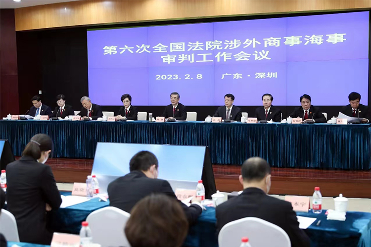 2月8日下午,第六次全国法院涉外商事海事审判工作会议以线上线下相结合的方式在深圳举行,最高人民法院党组书记、院长周强出席会议并讲话。周强强调,要坚持以习近平新时代中国特色社会主义思想为指导,全面贯彻落实党的二十大精神,深入贯彻习近平法治思想,深刻领悟“两个确立”的决定性意义,增强“四个意识”、坚定“四个自信”、做到“两个维护”,推进新征程人民法院涉外商事海事审判工作高质量发展,更好服务高水平对外开放,为以中国式现代化全面推进中华民族伟大复兴提供有力司法服务。