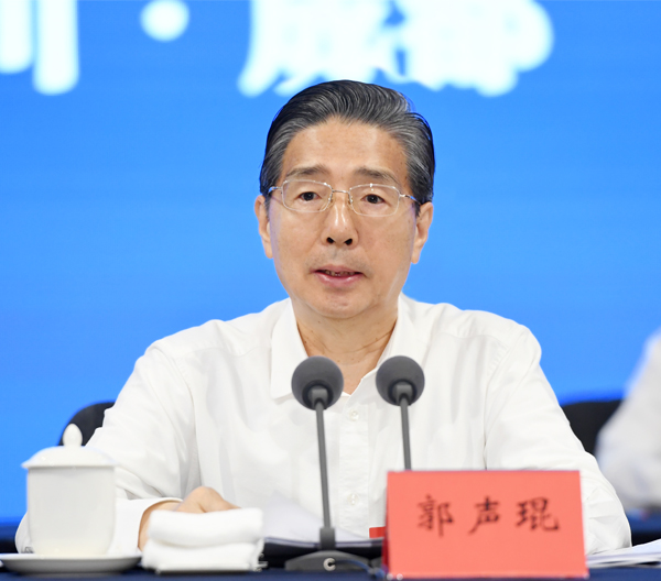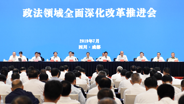 2019年7月19日,政法领域全面深化改革推进会在成都召开。中共中央政治局委员、中央政法委书记郭声琨出席会议并讲话。摄影 郝帆