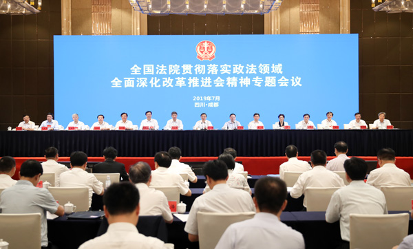7月20日上午,全国法院贯彻落实政法领域全面深化改革推进会精神专题会议在四川成都召开,最高人民法院党组书记、院长周强出席会议并讲话。周强强调,要坚持以习近平新时代中国特色社会主义思想为指导,认真学习贯彻习近平总书记关于政法领域全面深化改革的新理念新思想新战略,深入贯彻落实政法领域全面深化改革推进会精神,扎实推进人民法院司法体制改革,不断提高新时代司法工作水平,为实现“两个一百年”奋斗目标和中华民族伟大复兴的中国梦作出新的更大贡献。